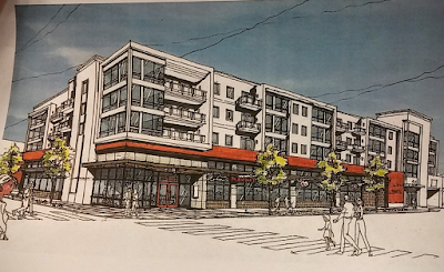 Master Properties is proposing to build 76 apartments and a grocery store at 2601 Lyndale, in the space currently occupied by a vacant lot and four houses. At last night's meeting of the Whittier Alliance neighborhood association, developer Don Gerberding said he has an agreement in place for all six parcels, and he plans to complete the purchase by the end of February. When asked, he indicated the development proposal was not contingent on the involvement of the specific retailer currently attached to the project.